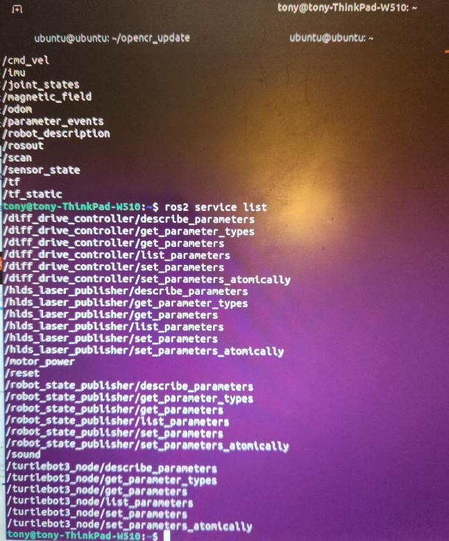 2 = a tab with SSH running on the RPi where I can run ros2 topic list & ros2 services list
